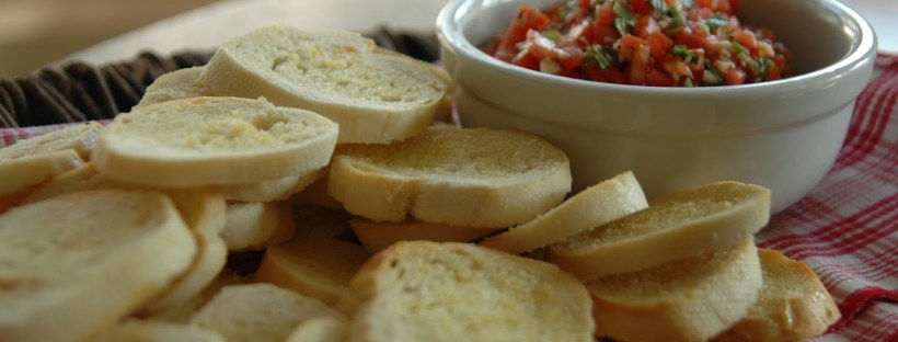 It has changed a bit over the years, as we now have to recruit babysitters for our 6 kids (collectively) and we have pared down the number of new recipes per celebration for the sake of simplicity and stress reduction. But a few things are constant: the meal is always a pleasure to prepare together, the Daves are thrilled to consume it, there is always Bruschetta for an appetizer and a great dessert to end the meal.