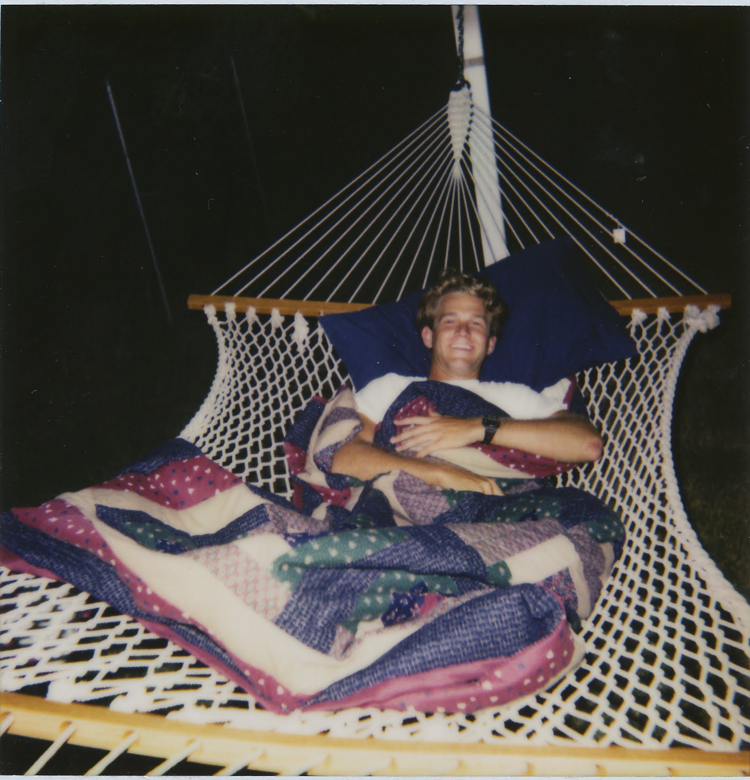 [This photo of Dave is from that summer in 1993 with his beloved quilt that survived the cake trauma.]