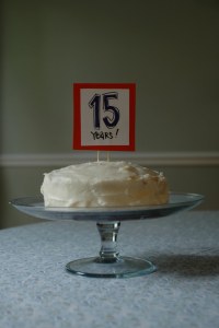 It’s my 15th Wedding Anniversary. It’s hard to believe that we have been married 15 years, and yet, I can’t remember life without Dave. Our relationship has been an anchor in the midst of many joys, challenges, twists and turns of life. For our anniversary I have made a Red Velvet Cake with Cream Cheese Frosting and we will proceed to stuff ourselves with it for the next couple of days.