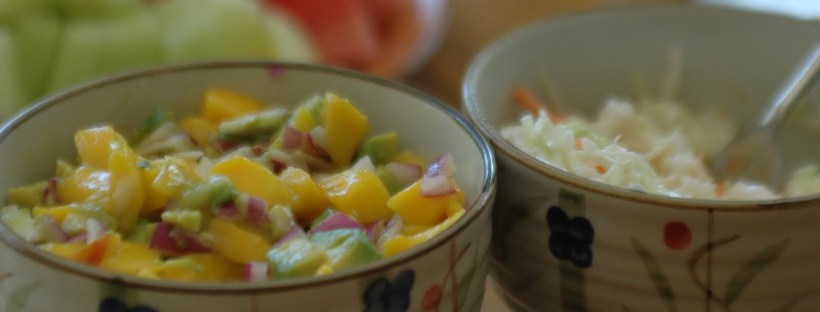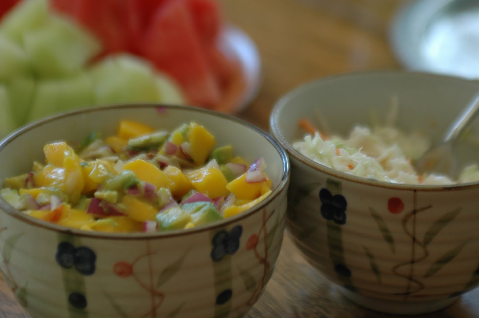 Since the “Celebration of Daves” post, a couple of people have asked for my Fish Tacos recipe. I am so glad to share it with you, as well as the mango/avocado salsa, and tangy slaw, which are essential elements.
