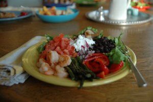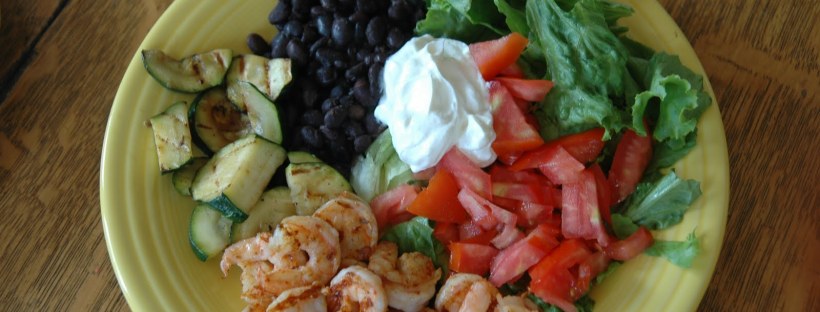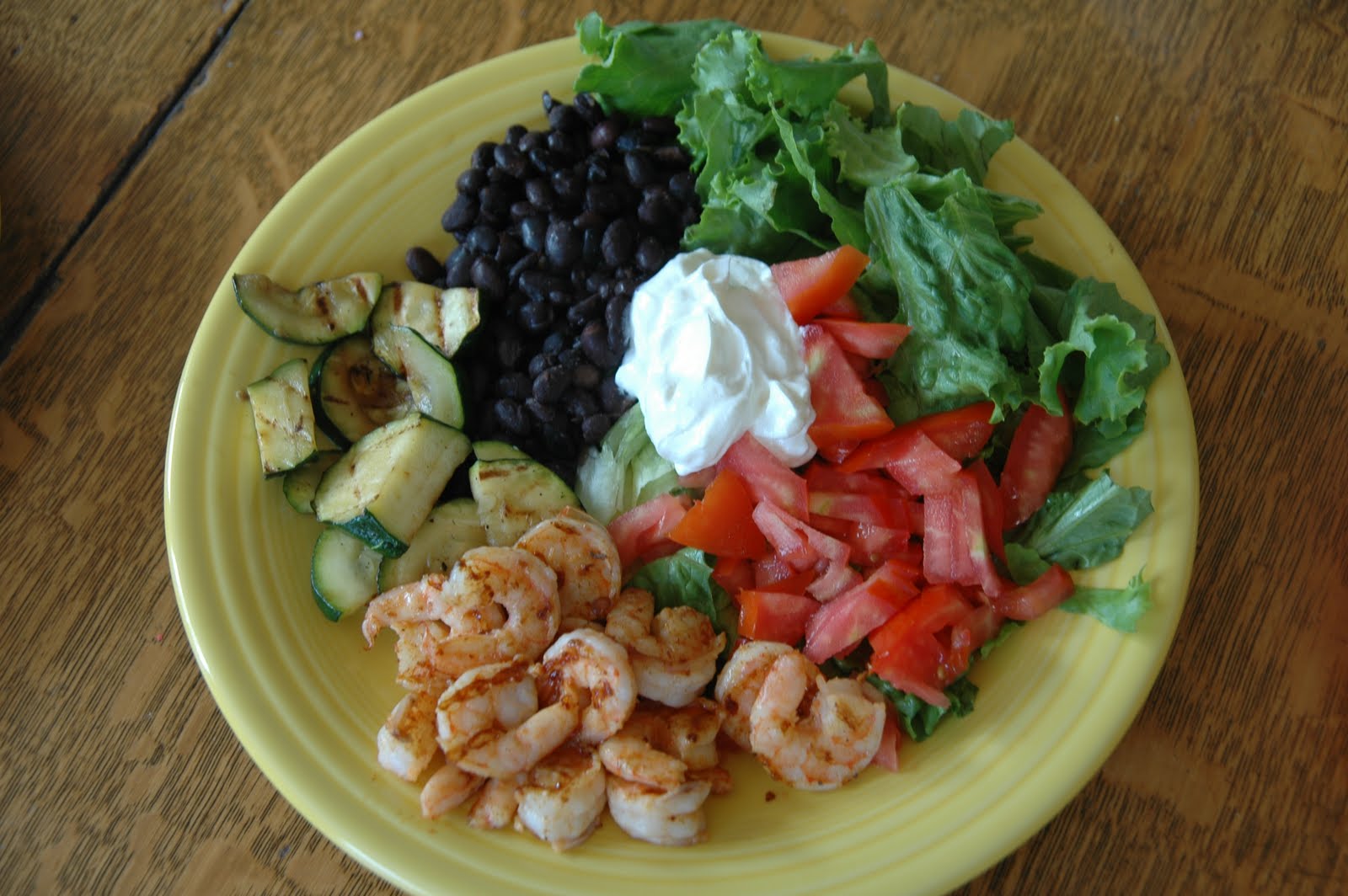 You can switch it up however you like-exchange the shrimp with tilapia or roasted chicken or just go vegetarian. And you can add shredded cheddar cheese, tortilla chips, and/or rice if you want. This is the “lightest” version but get creative and individualize the dish to your liking.