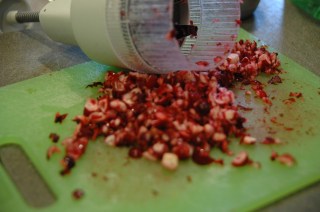 | Using this handy pampered chef chopper makes the cranberrry and pecan chopping simple. |