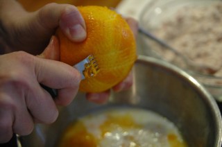 Whisk together the dry ingredients, stir in chopped cranberries and nuts. Whisk together the orange zest, eggs, milk and melted butter. Add the wet ingredients to the dry, stir until fully combined but don’t beat it or over-stir! Fill greased muffin cups almost to the top.