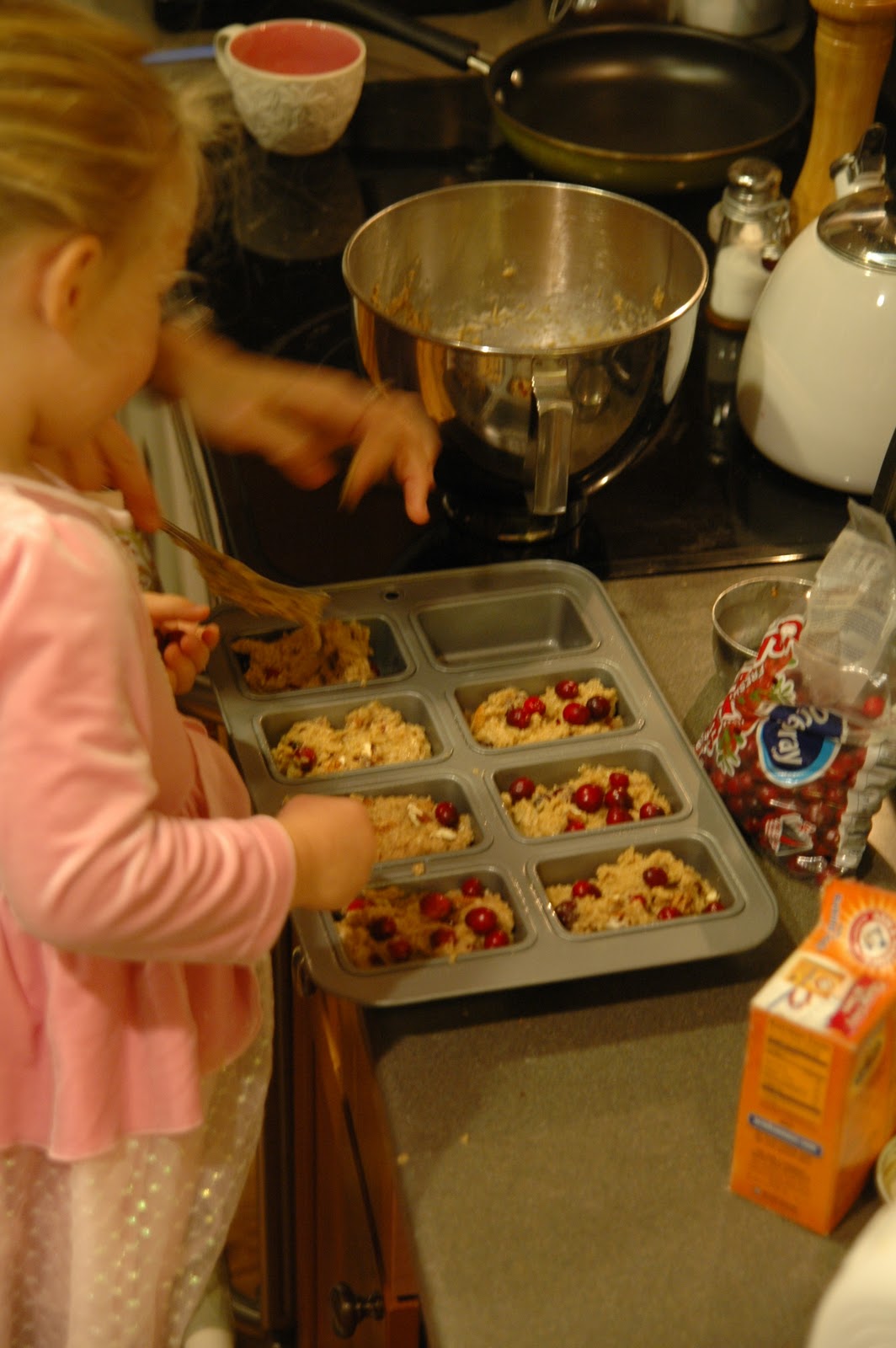 I have been having a cranberry fest this week. I am writing about cranberries, talking about them and making cranberry recipes! Earlier this week Lucy, my 2 year old, and I made a Cranberry Pecan Bread recipe, that my friend Emily emailed to me recently. Yesterday my college student friend, Caroline, came to bake and we made Cranberry Oat Muffins and Cranberry Orange Salad.
