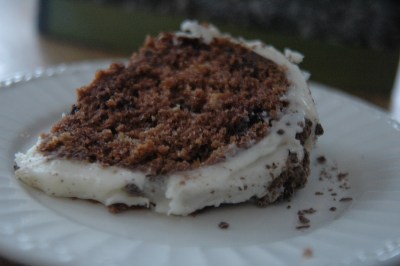 I often make this cake in a Bundt pan without frosting it. However, if you want to ramp it up, the following cream cheese frosting does the trick.