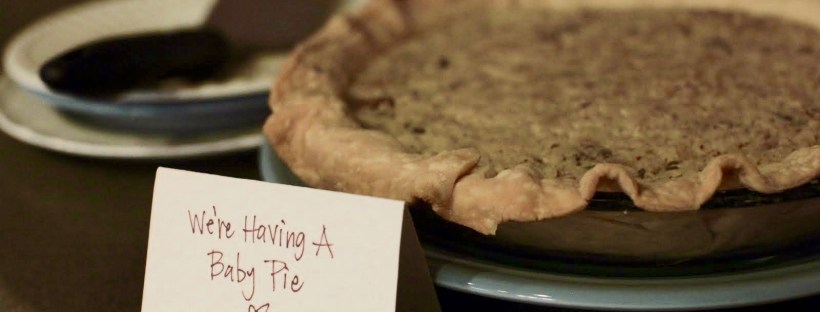 I decided to make a pie: Amy’s favorite pie- Kentucky Derby Pie and serve it with a label on it: “We’re Having a Baby Pie”. So I made that pie, singing the Pie Song and invited Amy to have a piece of pie. She asked, “What kind of pie?” and I said, “we are having a baby pie”as i lifted the pie cover. She said, “what?” and the rest is history… 3 years and a few pies later we are celebrating that baby’s 3rd birthday.