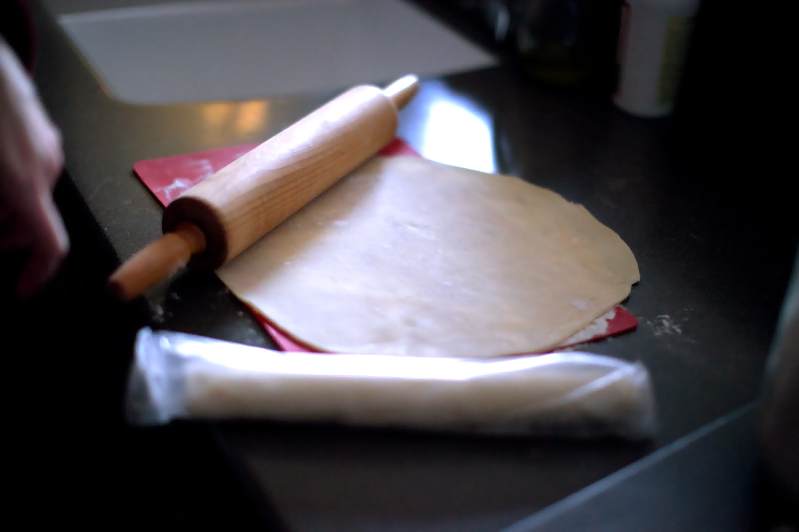 Start with the pie crust and follow the directions on the box for prepping it. I slightly roll it out on a floured mat to give it ample room to hang over the pie lip.