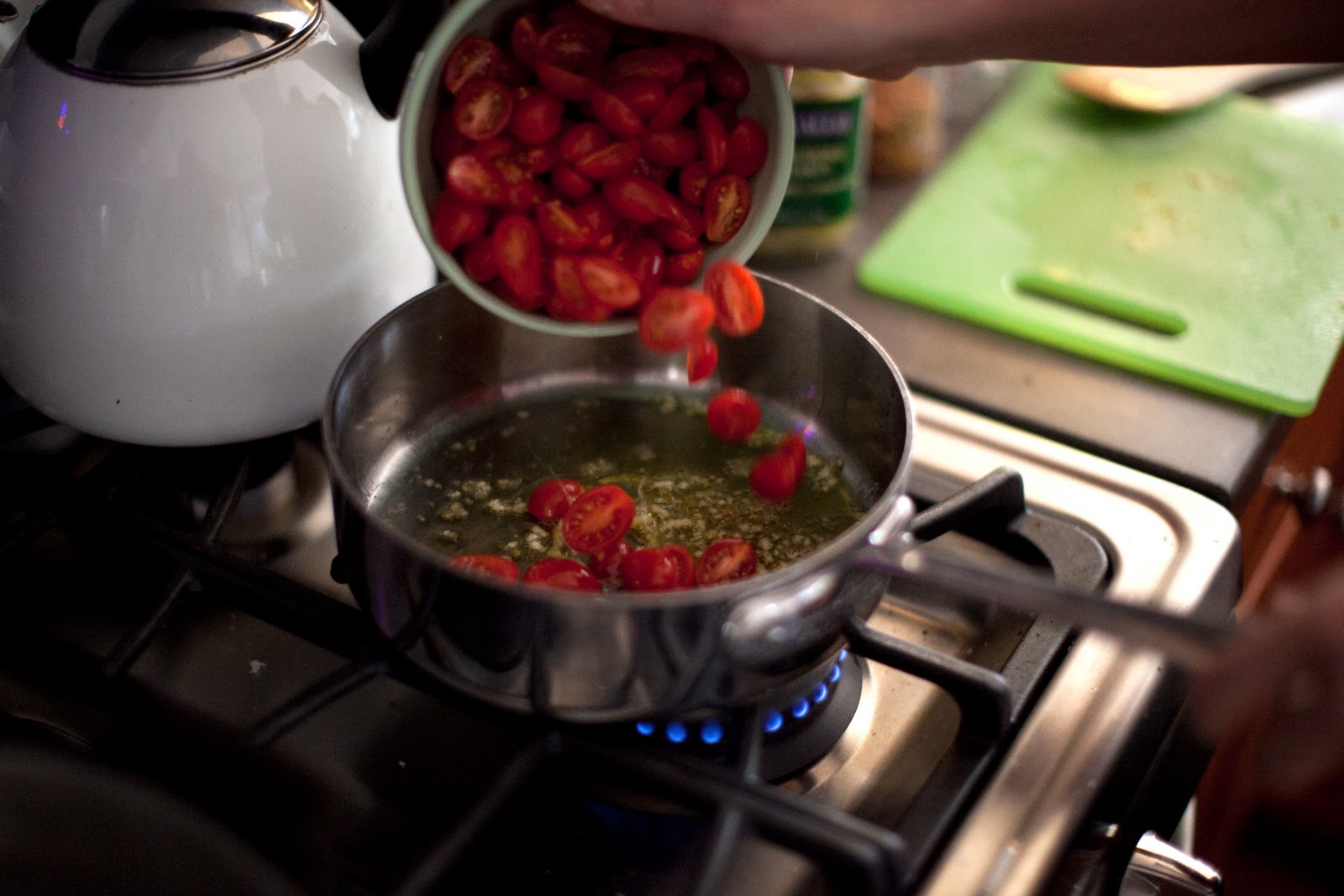 Our family LOVES this pasta recipe! I must have made it on a weekly (or bi-weekly!) basis this summer when our garden cherry tomatoes were plentiful. And, actually, we were served this dish the very first time we had dinner with you guys. It's a favorite for many reasons!