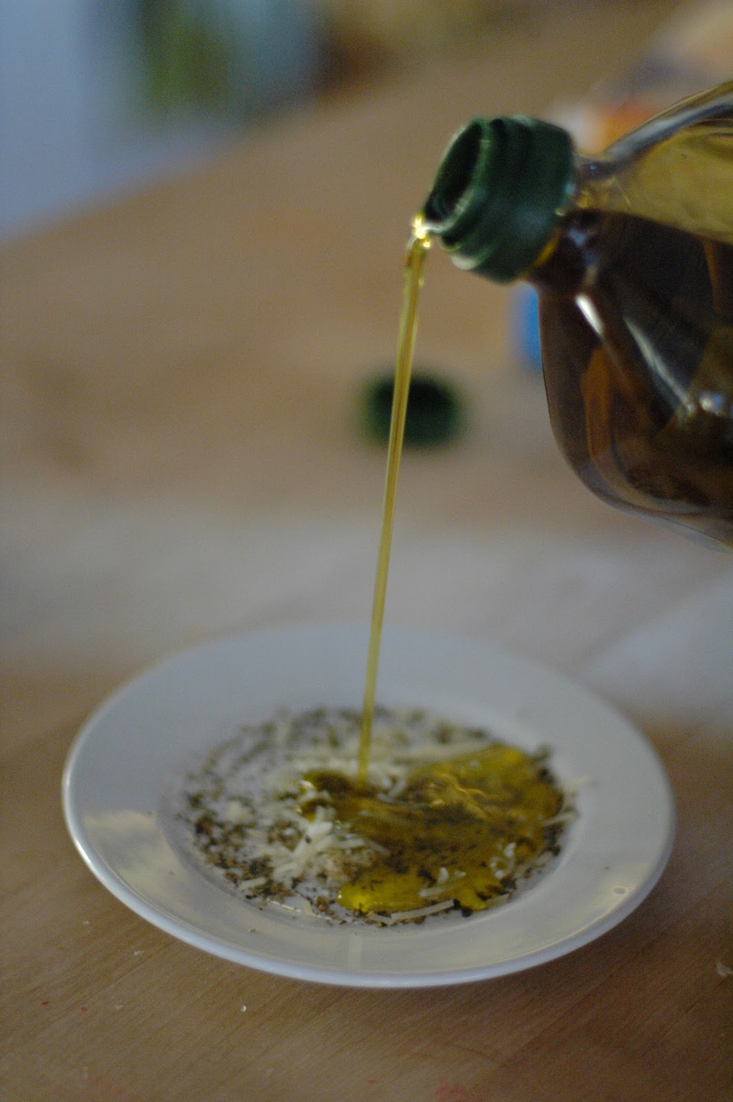 then pour olive oil over it. Swirl with a fork and you are ready for dipping.