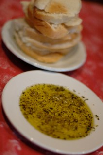 We love to do what Carrabba’s Italian Restaurant does with bread and dipping oil.  Just slice up some crusty artisan bread, sprinkle fresh and/or dried herbs (fresh garlic, basil, kosher salt, ground pepper, Italian seasoning, a little parmesan cheese) in little dishes.