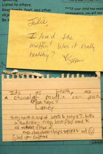 I shared one with my kids’ teachers and this was the post-it note I got from Lainey’s teacher in her school folder. I’m telling you- they are delicious!