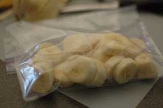 I wrote about over-ripe bananas in my last post, and in addition to banana bread, this is a great use of them! Peel and slice your ripe bananas, throw them in a ziplock bag and place in the freezer. Then they are ready when you want to make a smoothie.
