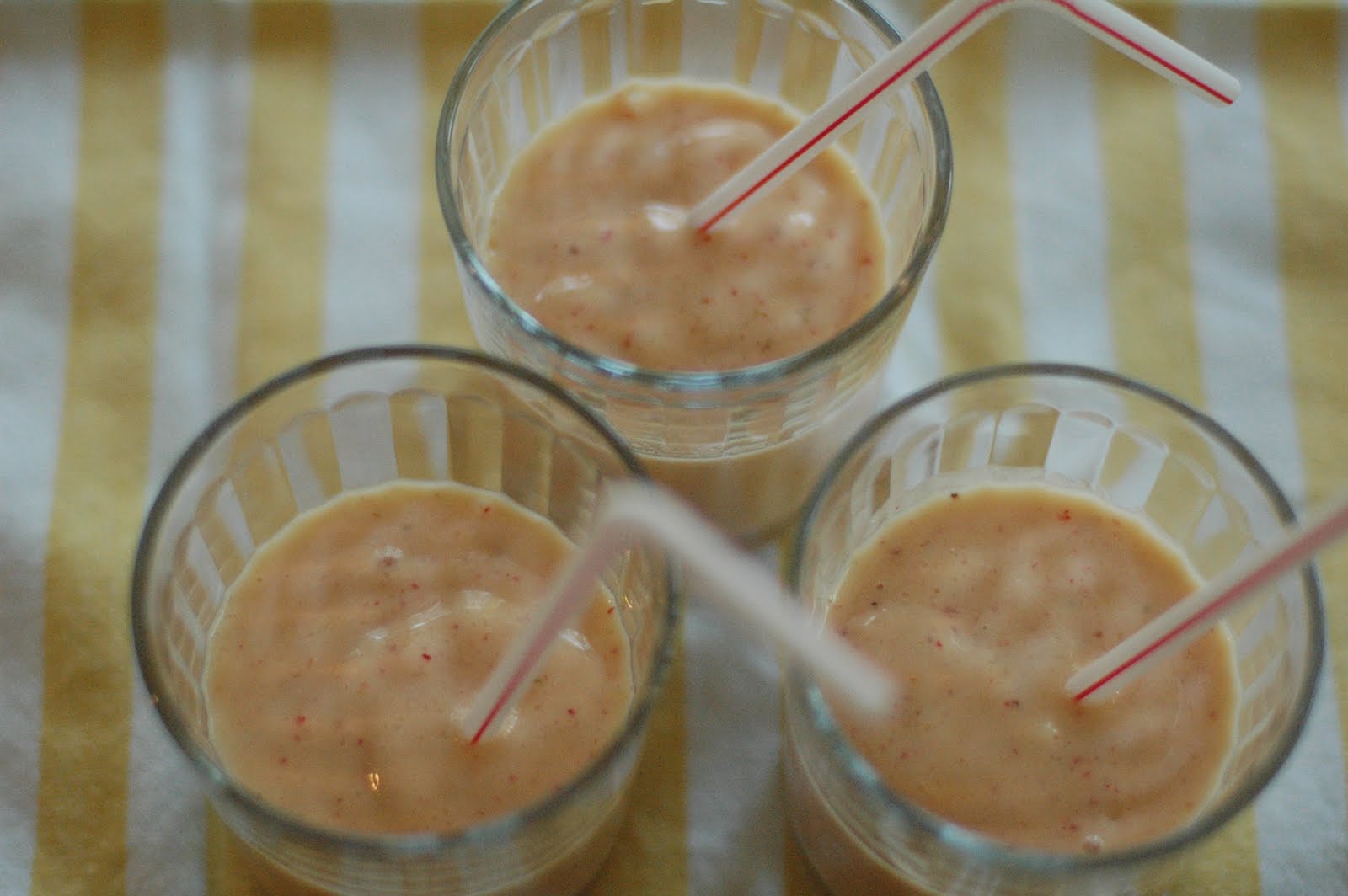 This week we had mango and strawberry fruit salad for dinner. We had leftovers and I knew that it would get yucky by the next day in the refrigerator, so I froze them. This morning we used them in a smoothie with banana, orange juice, ice, and vanilla yogurt. In a few minutes I heard the sound of success…slurping straws in empty glasses!