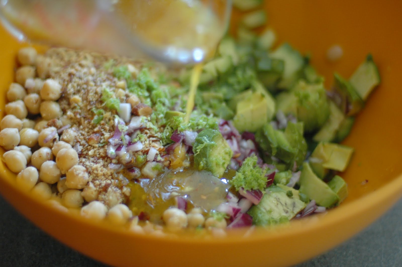 This salad is one of my new very favorites – I love the kick it has, and the way the avocado sort of melts and becomes part of the salad dressing is delicious! YUM.