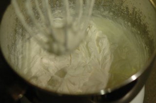 Pour 1 pint of whipping cream into mixing bowl and let it go full speed for a few minutes until thickened and peaks remain when you pull out the beater. (Watch it or you will have butter in your bowl!) Add a hefty spoonful or two of sugar and voila!