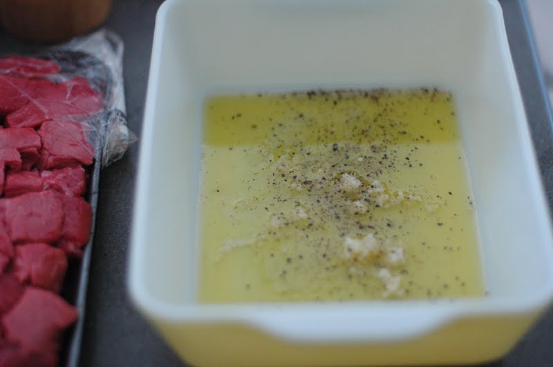 2 pounds beef tips &/or chicken breast cut into 1 1/2 inch cubes