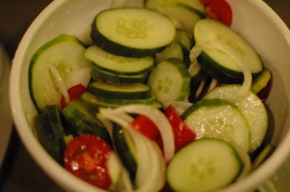 So, I quickly post this fresh and easy salad which is a classic southern dish. My grandmother Adcox used to make it and serve it in little brown bowls at her dinner table. I love it. I think it’s the vinegar/ sugar/salt combination. All things I love. Do you like salt and vinegar potato chips? YUM! – especially Kettle ones – even though I usually end up with sores in my mouth after eating them!