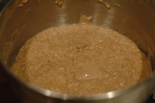 Combine the moist bran with the beaten eggs, the remaining 2 cups of bran, buttermilk, blended sugar/butter mixture, and the dry ingredient mixture.