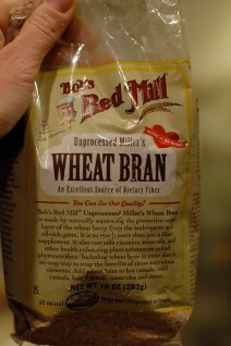 Mix 1 cup of wheat bran with 1 cup boiling water; stir and let water absorb into bran.