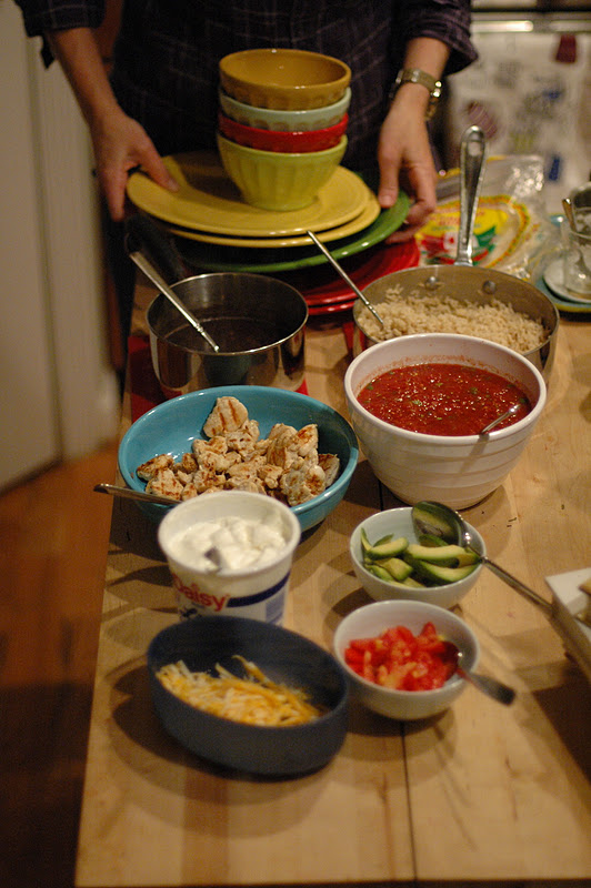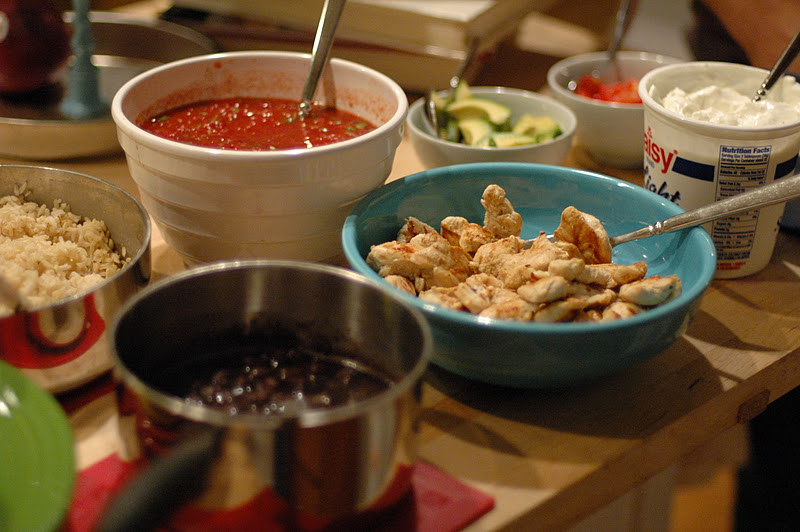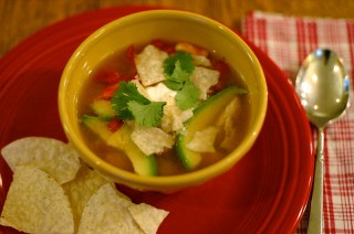 Our small group for church has dinner each week at our home and we decided to do a taco night. In addition to tortillas, we had a pot of broth on the stove. That way, with the same ingredients we could offer soup and tacos. People could choose the ingredients they like, topped with broth rather than wrapped in a tortilla.