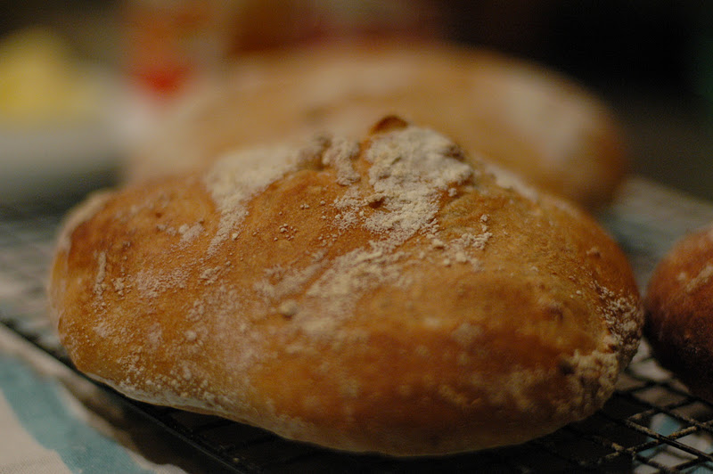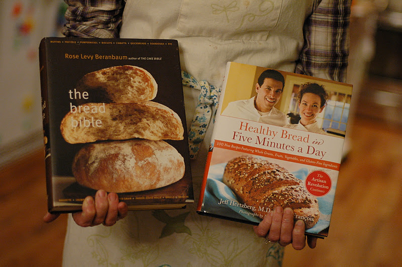 A couple of years ago I began trying to make my own artisan bread.  Since I love to bake, and like to try new adventures and am cheap, I really wanted to give it a try.  It is astounding to me that you can make beautiful loves of delicious bread with flour, salt, water, yeast and sometimes a little olive oil and/or honey.  For pennies!  So, I asked my friend, Steve- the bread man- about the best resource and he recommended The Bread Bible by Rose Levy Barenbaum.  I bought it and have tried several recipes from it.