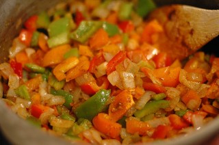 Add peppers and spices.  Stir together and cook for a few minutes.