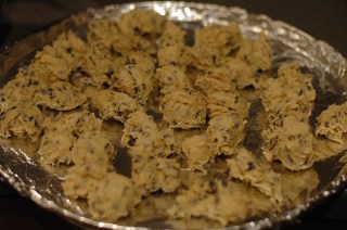 I blob the dough out with my small cookie scoop and wet my hands with water to pat the dough evenly, without it sticking to my hands.