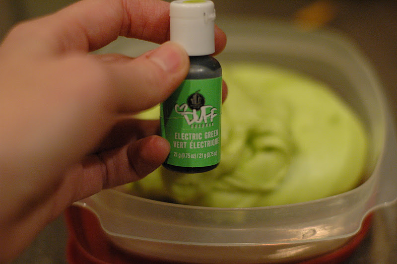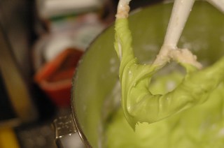 Asher loves green (especially lime green) so I colored the frosting lime green. I have to recommend that if you have never used food coloring gels, you need to try them.  They now come in squeeze bottles, which are really convenient and not messy.  They make all kinds of colors and I got this set last year at Michael’s Craft Store, when I was making the Dia de Los Muertos cookies and needed bright colors!  Two drops make a lime green.