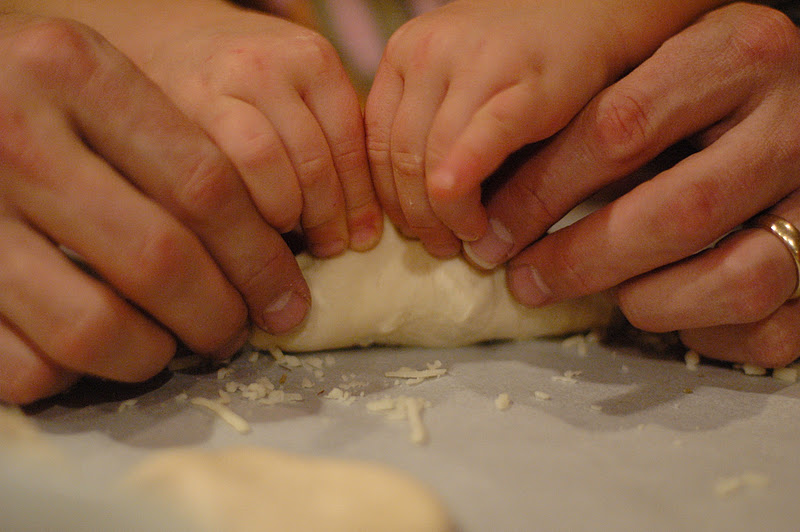 Let rise for a few minutes and bake according to dough package instructions.