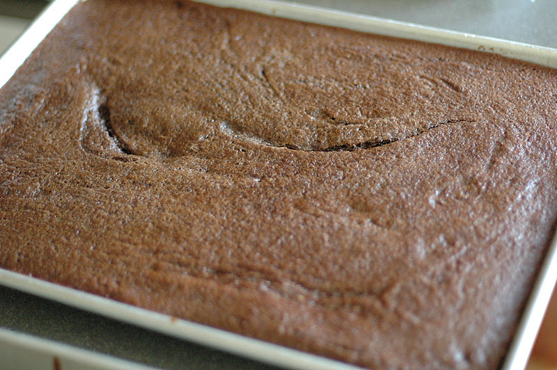 I got this recipe from my Grandmother Simpson. She and my Grandaddy moved to Oklahoma right before my mother’s senior year of high school. So, once my brothers and I came along, we always made the trek 7 hours west to Oklahoma to visit them. My Grandmother always, always, always had this cake frozen in individual pieces in her freezer. I LOVED this cake as a little girl (and still do, for that matter!!). I can still remember defrosting a piece in her microwave and topping it off with a scoop of vanilla ice cream. I can still taste the warm chocolate icing, slightly melted from its time in the microwave, scrumptiously married with the cold ice cream.