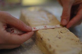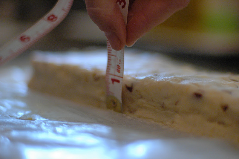 With a sharp knife, cut dough into 1/4 inch thick slices.