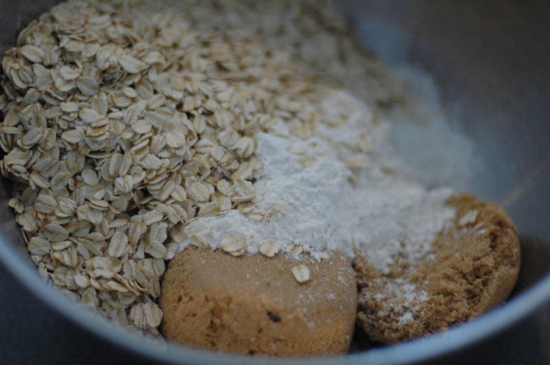 Crumble the remaining oatmeal batter over