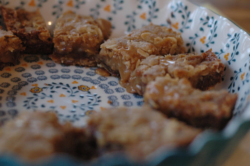 So, a few weeks ago, I saw this incredible looking Carmelita Bar on Pinterest. (If you haven’t found pinterest, and you like beautiful things and collecting ideas, you should totally check it out). I pinned it and added it to my “Yum” board.  I was needing to make a dessert for our Social Work Chili Supper and was thinking it might fit the requests of my students: yummy, gooey, chocolate and no nuts.  So I made it.  It was everything and MORE than what I hoped it would be.  Carmelitas.  Layers of brown sugar/butter/oat bar cookie with thick, melted carmel, and semi-sweet chocolate in-between.  YUM!