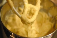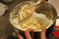 Cream together – sugar, butter and Crisco, then add the egg yolks and mix