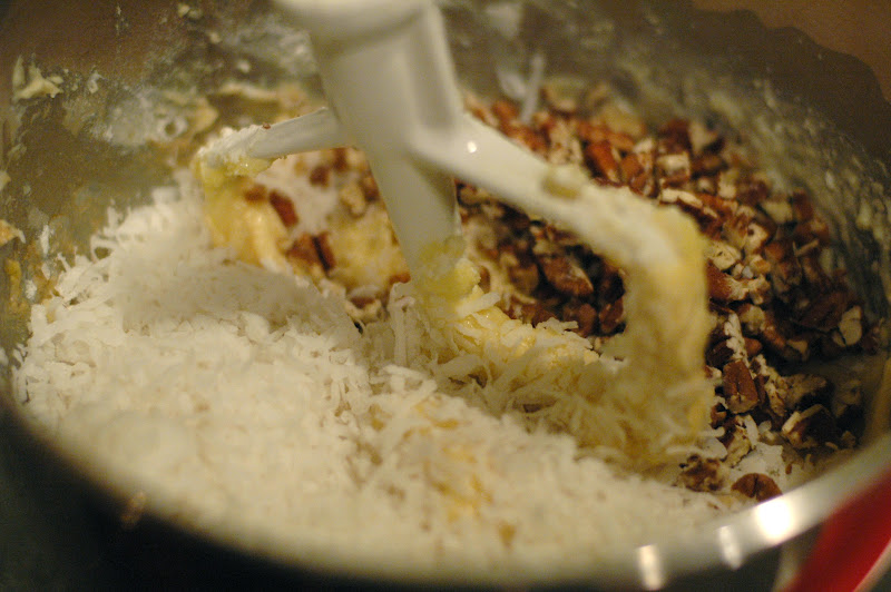 Add vanilla and then fold in coconut, pecans and stiffly beaten egg whites