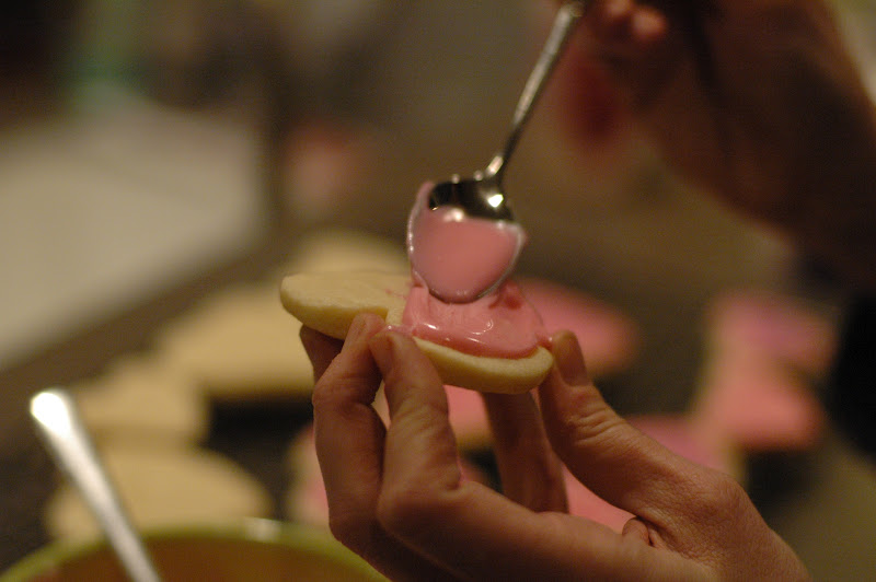*I started making the almond glaze when I was inspired by Ham and Goody’s bakery that makes these yummy teacakes and sugar cookies with beautiful, smooth, glossy glaze that I am in love with. I think it is the perfect companion to this great cookie and makes them so beautiful! My friend Karin and I have observed the “marriage” that happens between the cookie and the glaze that makes the cookie soft and sweet and it is just mysteriously beautiful (kinda like marriage). And I use the back-of-the-spoon technique where I blob some glaze on the cookie and then use the back of the spoon to guide my smoothing it all over the cookie.