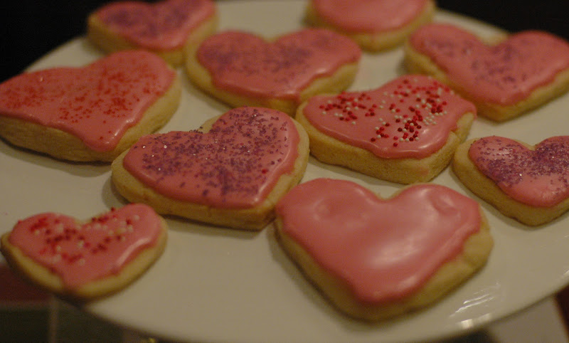 Last year I wrote about the Linzer cookies that I think are just delightful. They are a lovely Valentine’s treat. But most years I can’t resist making my mom’s timeless sugar cookie recipe for Valentine’s. They are just so pretty when they are heart-shaped!