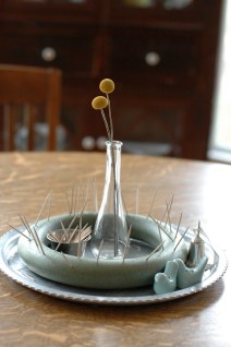We placed a styrofoam wreath on the table, to be kept during the 40 days of Lent, with a cup of toothpicks nearby. Each night at dinner, those at the table had the chance to confess sin from the day. When they did so, they placed a toothpick in the wreath, symbolizing the thorns in the crown of Jesus on the cross. It was uncomfortable to do this – on many levels– (being aware of the sin in our hearts, the physical placing of the thorns in the crown, and the admitting of sin out loud).