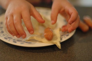 Some people make these with refrigerated biscuit dough, which is cheaper, but not as tasty. Also, the instructions on how many blankets you can make from one crescent roll varies. I try to cut the dough so that it makes 3 blankets out of each pre-perforated crescent roll.