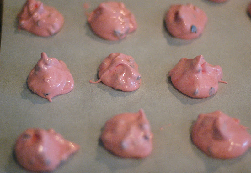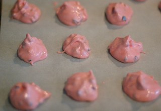 The wonder of these cookies, is that you whip some egg whites and a few other ingredients, and drop it by the spoonful onto baking sheets. Minutes later, crunchy, airy, meringue cookies appear!
