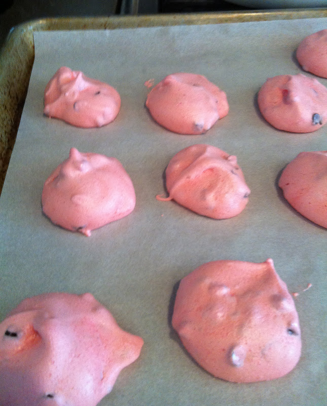 These are so yummy! I couldn't stop thinking about them after tasting testing, so I made them and the recipe makes a lot! Bonus! I piped some of them and they turned out really pretty with peaks. I've always been scared to make meringue cookies, but they're easier than I thought and I love that they only require a few ingredients. Thanks, Julie!
