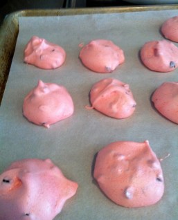 I have this memory of pink, fluffy, crunchy pillows of raspberry meringue dotted with chocolate chips inside. These meringue cookies were soley connected to my first piano teacher. They are lovely. I don’t have great memories of lessons. It was actually a painful and difficult experience from which I have very few vivid memories. I think the majority I mercifully forgot. I wasn’t great at practicing and I wasn’t great at criticism. I have memories of the afternoon sun on my back in the stuffy backroom where the lessons took place. I remember her perpetual disappointment in me.