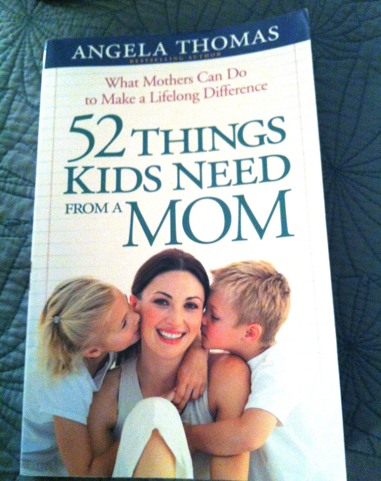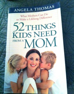 52 Things Kids Need From A Mom, by Angela Thomas. I like her a lot. I saw this book at a store a couple of months ago and picked it up.
