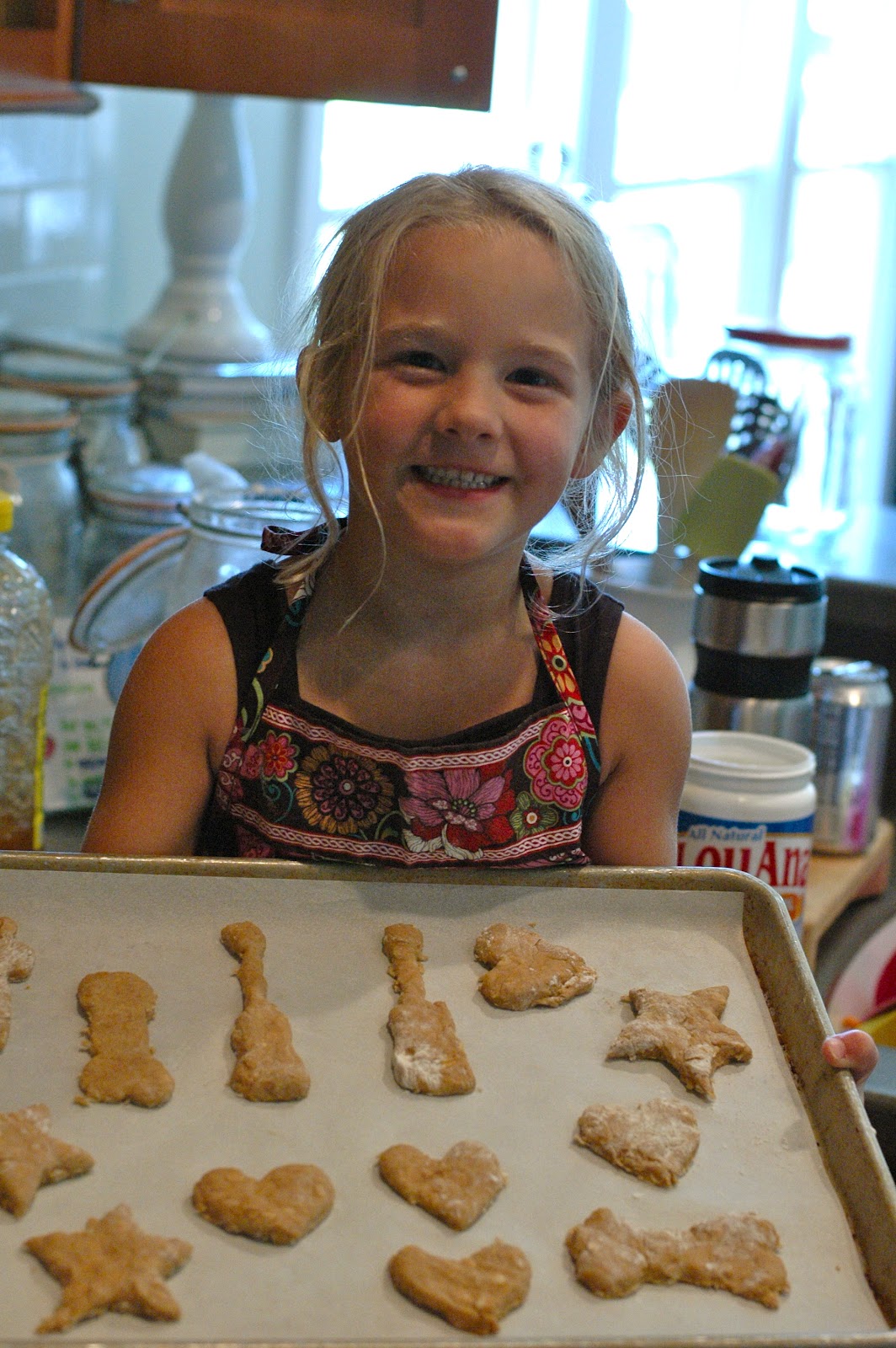 When the day came for the puppies to be picked up, Lucy woke up, came downstairs and declared, “This is my luckiest day ever!”. The challenge was that we had to wait until late afternoon to meet “the girls”. We decided to make some homemade dog treats for them – something fun and productive to do to pass the time (the waiting time).