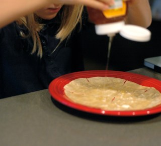 When I got home I pulled out tortillas, honey, pistachios and the tub of mascarpone [CLICK the link for the correct pronunciation of this word that we often butcher in the south]. I had mascarpone on hand, because my colleague, Debbie, had given it to me along with some European cheese and butter for my birthday!