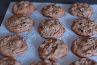 I try to love my teachers through notes, and prayers, and baked goods.  These Chocolate Chip Peanut Butter Cookies are ones I made for Lainey’s teacher a few weeks ago. (Lainey is in 3rd grade this year).  [Of course, at our school, I had to attach a note with a warning that “THESE CONTAIN PEANUT PRODUCT”].  The recipe is from The Peanut Butter & Co. Cookbook,  a cookbook filled with peanut butter recipes from the peanut butter sandwich shop in NYC.   I think these cookies are terrific!  They are crispy yet chewy, rich and chocolate-studded.   I can’t think of anything much more comforting than a Chocolate Chip Peanut Butter Cookie.  I wish I knew what Mrs. Stooksbury’s favorite kind of cookie was so I could make it in her honor! (I may just have to start calling these the Mrs. Stookbury cookies in memory and honor of her.)