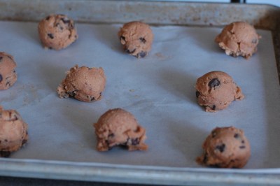 Preheat oven to 350˚. Remove the cookie dough from the refrigerator and cut into 1/4 inch slices (if a log) OR scoop with spoon or scoop.  Place cookies on a cookie sheet at least 1 inch apart and bake for 10 minutes or until fully baked.  Allow cookies to cool on the pan for a few minutes, as they easily break when hot.