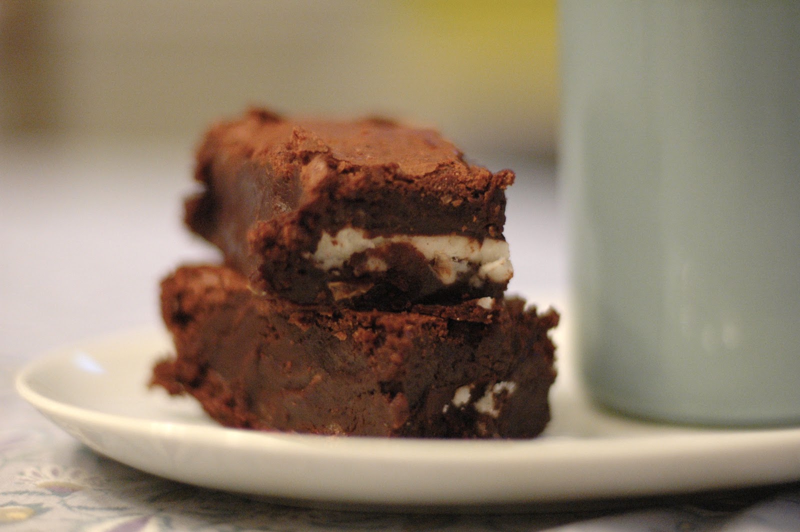 These brownies are simple. You can use your favorite brownie mix if you have one on hand or use this recipe-which is rich and fudgey and uses both cocoa and melted semi sweet chocolate. (You know it’s fudgey when the recipe calls for lining the pan with parchment or foil).