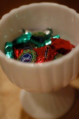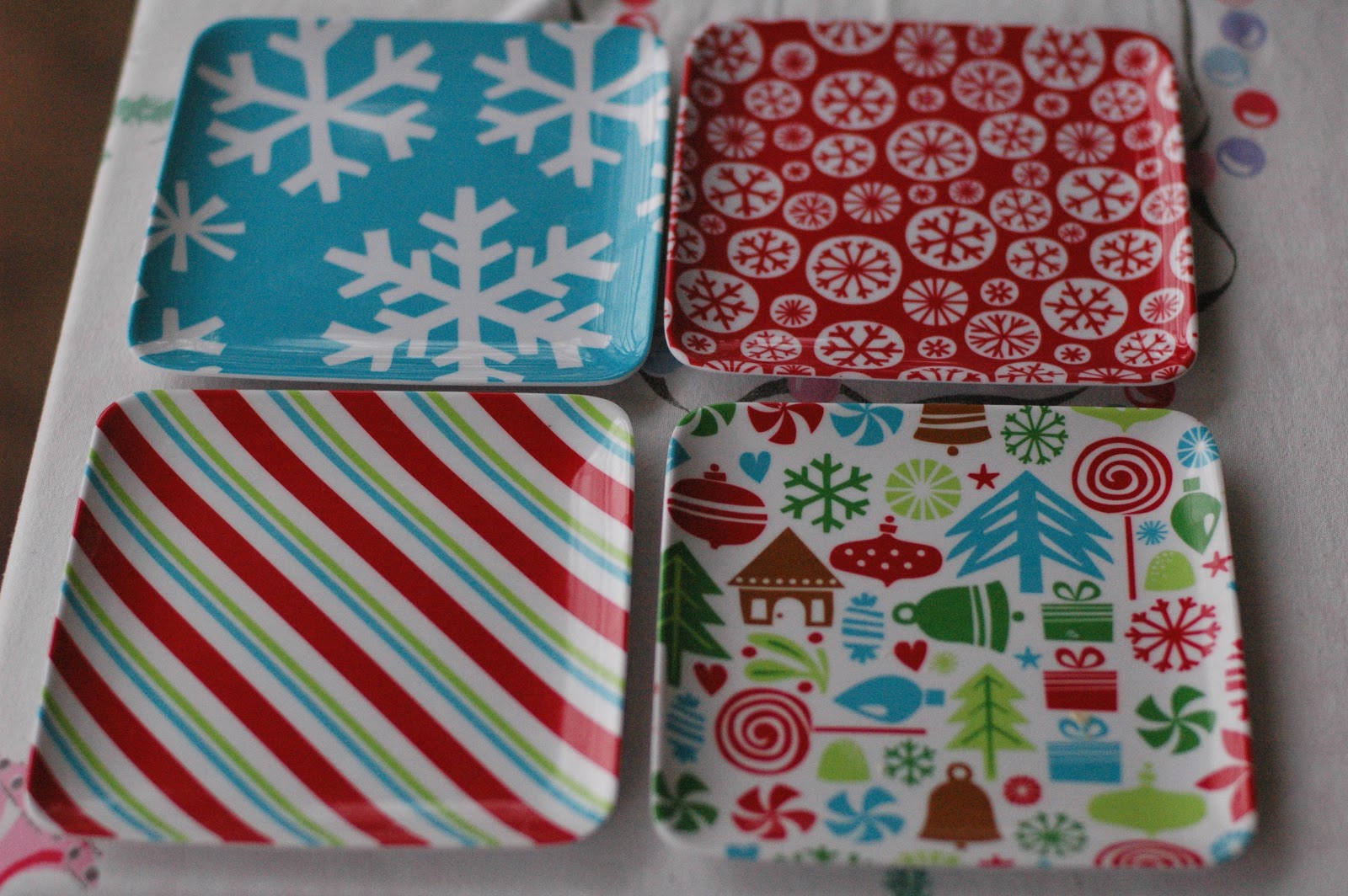 I just bought 3 sets of these cute little melamine appetizer plates at Target on Wednesday and am trying to decide which ones could stay in use and not look too Christmasy. Maybe use the two snowflake ones and put away the tree/ornament/gift ones? I’m not sure about the candy cane striped. They are questionable.