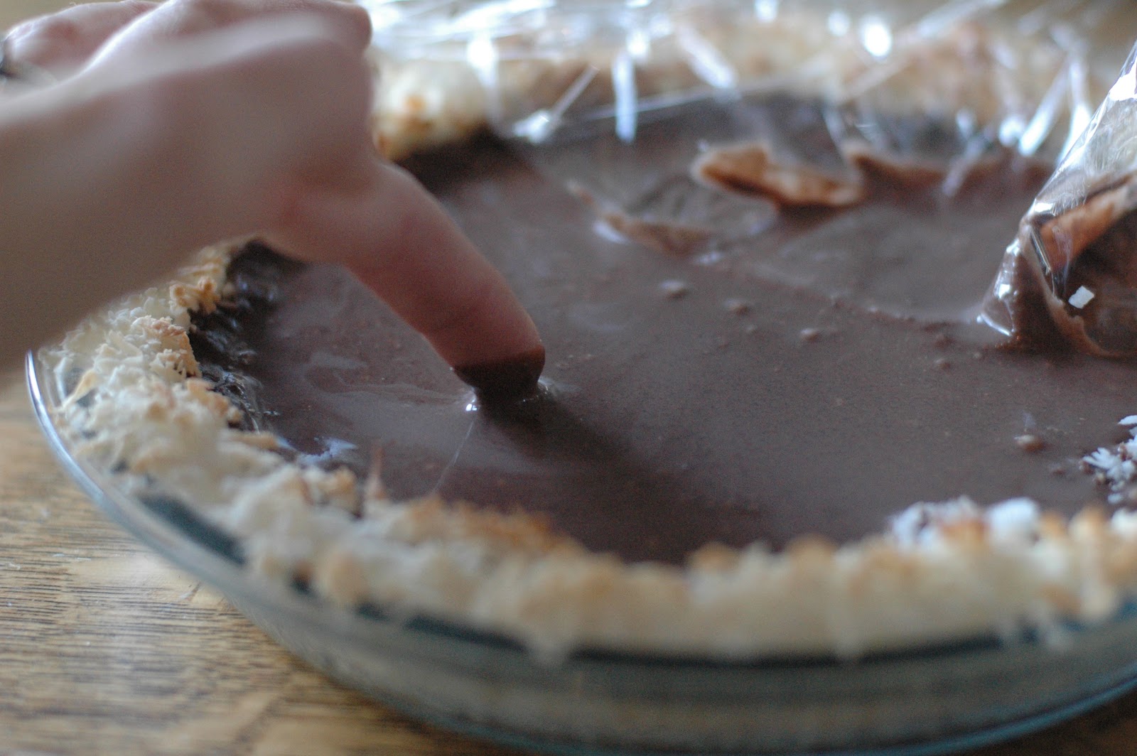 So the other day, friends came for dinner, and I broke a different principle of my mom’s by trying a new recipe when company is coming. Because it was “low pressure” company – a couple from our small group at church, they love us/we love them, I thought it was worth the risk. I recently reorganized my cookbooks in the kitchen, and with the new arrangement, I am trying to use them more, now that they are more accessible. A Martha Stewart Pies & Tarts Cookbook is one that I had wanted to use but hadn’t had a chance to. I flipped through the pages the other day and marked recipes that looked especially yummy (and/or doable). I found a recipe for a Coconut Chocolate Pie and it looked amazing. I remembered that this couple we were hosting likes coconut, so it would be fun to make it for them. I followed the simple recipe and made the pie. And it bombed! The chocolate filling didn’t set up at all. I was so disappointed. After a couple of hours, I moved it to the freezer, instead of the fridge, hoping it would firm up. I kept checking it, and finally gave up. Our friends were kind and gracious. I was irritated.